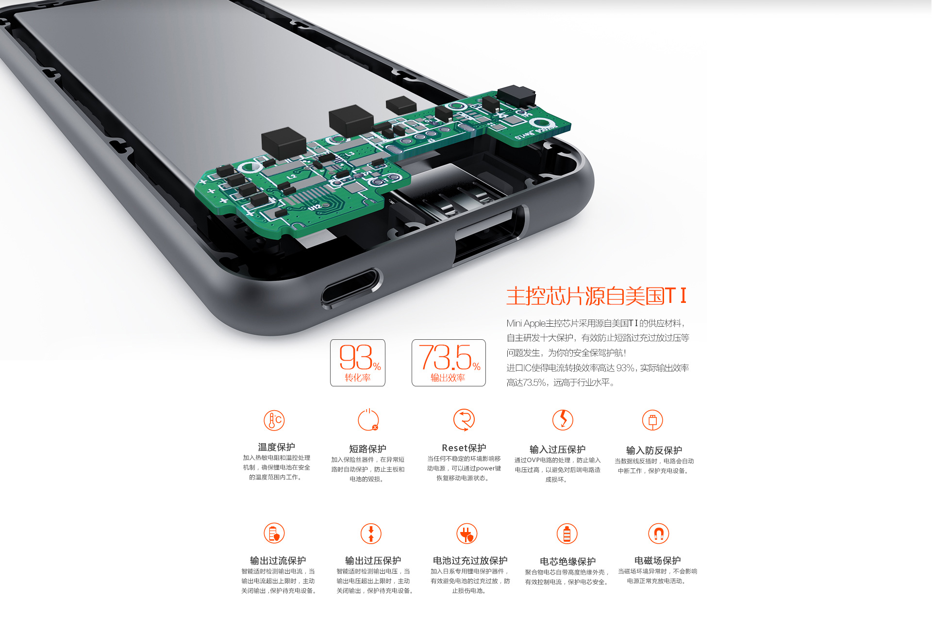 Mini Apple移動電源采用高性能聚合物電芯,來自iPhone電池同芯供應商;采用新型鈷酸鋰、錳酸鋰、磷酸鐵鋰及三元材料,增加100次使用壽命,提升10%電芯容量....