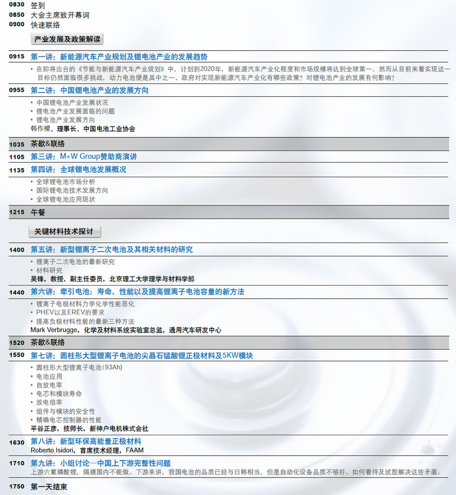 峰會簡介:在這里,您將總覽全球鋰電發展趨勢及市場機遇 超過15小時的內容分享--全球發展趨勢、鋰電池材料技術、制造工藝、成組技術及電池包的檢測等 會見行業關鍵人士 2天共超過15小時的內容分享,使您有效會見目標客戶。