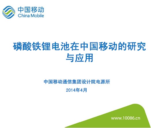 磷酸鐵鋰電池在中國移動的研究 與應用
