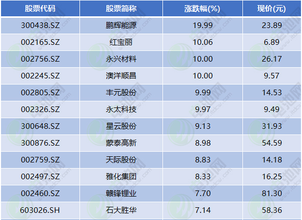 23日鋰電池板塊走強 鵬輝能源上漲19.99%