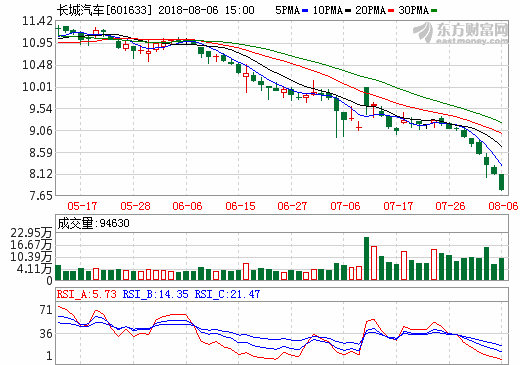 6日新能源汽車概念股盤后統計 長城汽車跌幅4.19%
