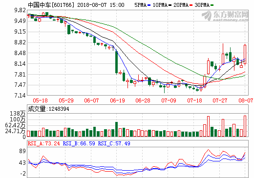 7日新能源汽車概念股盤后統計 中國中車漲幅8.05%