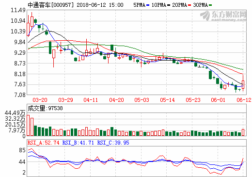 12日新能源汽車概念股盤后統計 中通客車漲幅6.11%
