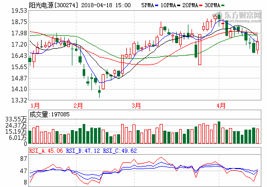 18日充電樁概念股盤后統計 陽光電源漲幅5.00%