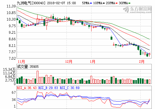 7日充電樁概念股盤后統計 九洲電氣漲幅3.91%