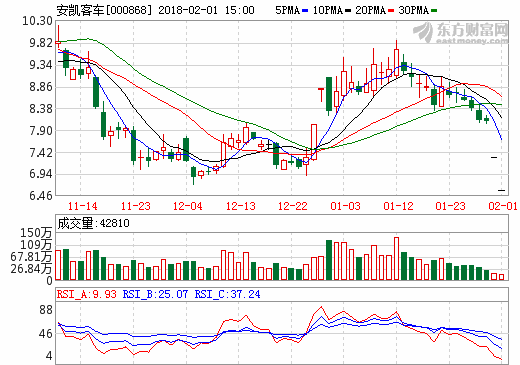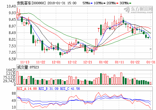 31日新能源汽車概念股盤后統計 安凱客車跌停