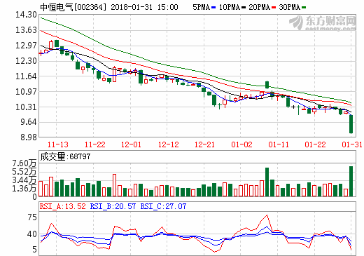 31日充電樁概念股盤后統計 中恒電氣跌幅9.43%