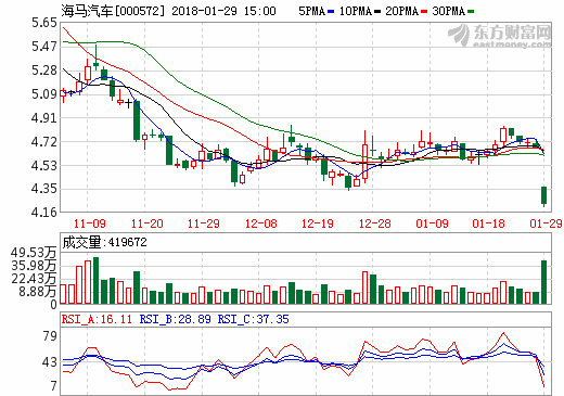 29日新能源汽車概念股盤后統計 海馬汽車跌幅9.64%
