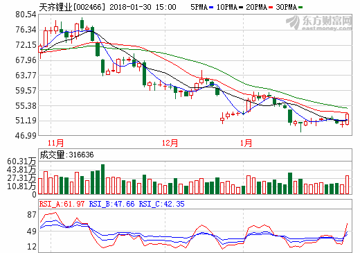 30日鋰電池概念股盤后統計 天齊鋰業漲幅5.79%