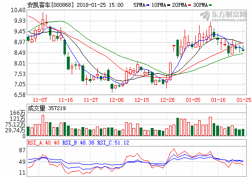 25日新能源汽車概念股盤后統(tǒng)計 安凱客車跌幅1.84%