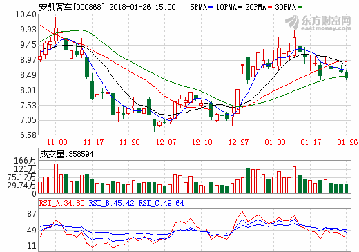 26日新能源汽車概念股盤后統(tǒng)計 安凱客車跌幅2.10%