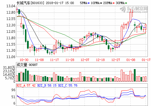 17日新能源汽車概念股盤后統計 長城汽車漲幅1.57%