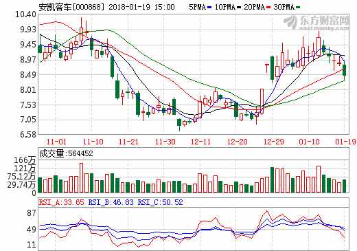 19日新能源汽車概念股盤后統計 安凱客車跌幅4.74%
