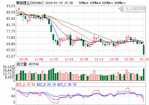 15日鋰電池概念股盤后統計 贛鋒鋰業跌停