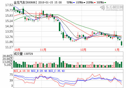 15日新能源汽車概念股盤后統計 金龍汽車跌幅6.62%