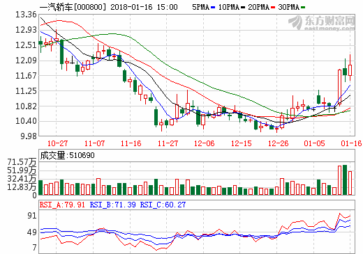 16日新能源汽車概念股盤后統計 一汽轎車漲幅2.49%