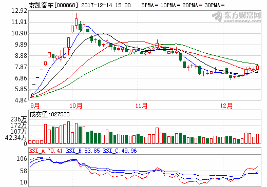 14日新能源汽車概念股盤后統計 安凱客車漲幅3.65%