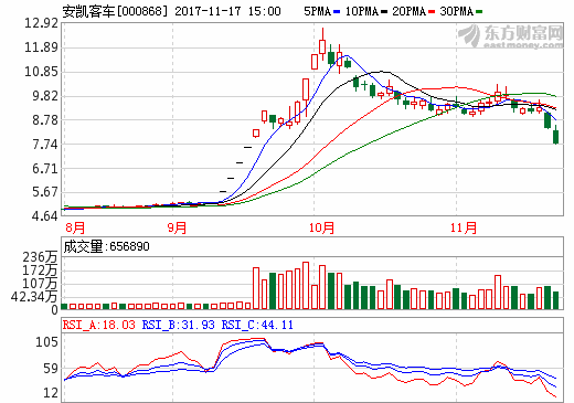 17日新能源汽車概念股盤后統計 安凱客車跌幅8.09%