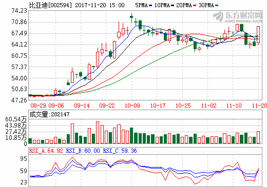 20日新能源汽車概念股盤后統計 比亞迪漲幅9.28%