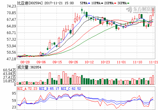 21日新能源汽車概念股盤后統計 比亞迪漲幅4.04%
