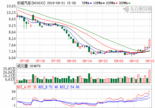 21日新能源汽車概念股盤后統(tǒng)計 長城汽車漲幅8.37%