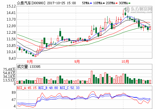 25日新能源汽車概念股盤后統計 眾泰汽車漲幅3.12%