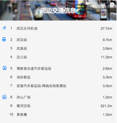 酒店無論從設計和服務理念上都崇尚獨特的文化內涵和高品質的舒適享受。格調,智能,舒適,獨特,是我們所追求的客戶體驗。酒店位于武昌區楚河漢街中段, 武漢中央文化區是武漢市武昌區最大的集金融、商業、娛樂購物和旅游的商業區。交通便利,比鄰中北路公交車站和4號地鐵線楚河漢街站,河對岸即沙湖大橋與過江隧道,來往漢口與武昌僅需5分鐘。4號地鐵線可直達高鐵武漢站,走中北路上二環線可直達武漢天河機場僅用40分鐘。沿中北路直行2公里就是武漢歡樂谷與武漢最大的自然風景區東湖公園。
