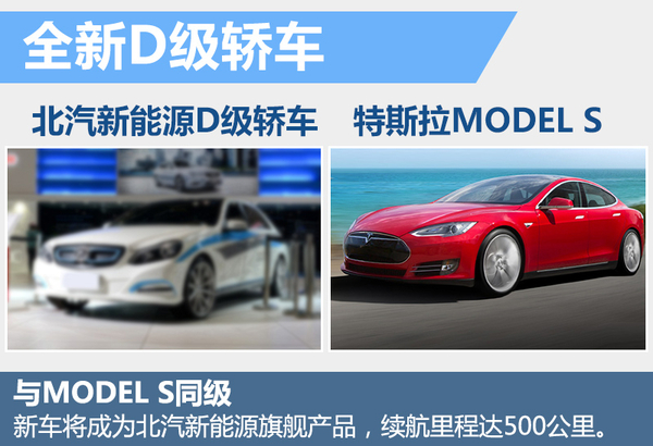 在北汽新能源的規劃中,在2017年將推出更具產品實力的全新高性能D級純電動轎車,新車也將成為北汽新能源的旗艦產品,其續航里程將達到500公里。從定位來看,該車將與特斯拉MODEL S處同一級別。按照此前消息,北汽新能源與Atieva聯合開展的高性能電動汽車設計研發工作正在硅谷緊鑼密鼓地推進之中,新車有望是該款D級轎車。