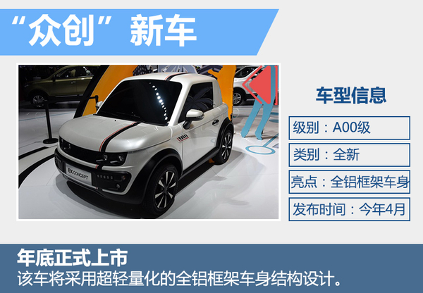 按照北汽新能源此前公布的規劃,到2020年年產銷量預計將達到50萬輛,一系列全新車型的推出將為這一目標提供產品支撐。近日,北京新能源汽車股份有限公司黨委書記、總經理鄭剛向網通社表示:“北汽新能源規劃推出5款全新車型,其中全新品牌‘眾創’車型將于4月份正式發布”。即將推出的5款車型覆蓋A00級、A0級、A級轎車及A級SUV領域。