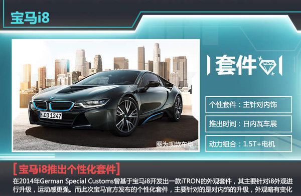 在2014年German Special Customs曾基于寶馬i8開發出一款iTRON的外觀套件,其主要針對i8外觀進行升級,運動感更強。而此次寶馬官方發布的個性化套件,主要針對的是對內飾的升級,外觀略有變化。