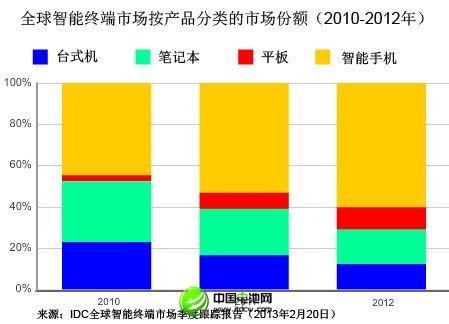 我們先來看兩組數據:IDC上個月發布了2012年全球市場智能終端(PC、筆記本、移動設備)出貨總量突破12億臺,其中智能手機竟達到了7.01億臺,占比重最大;同樣是IDC發布的數據2012年第四季度,PC機出貨量為8980萬臺,同比下跌了6.4%,連續五年來第一次下跌,而同期平板電腦達到了5250萬臺,同比增長75.3%,預計2013年第四季度將超過傳統PC出貨量。