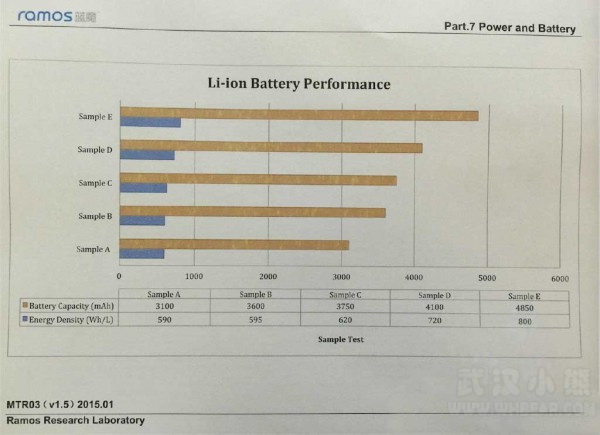 近日,有有外媒曝光了藍魔的一款神秘手機,雖然說手機配置方面沒什么亮點,但其曝光出的電池配置確實相當吸引人。從曝光的圖片上看,其手機內置的電池能量密度約為800Wh/L、容量達3.8V/4850mAh,從這些數據來看就相當厲害了。目前主流智能手機的電池能量密度在560Wh/L左右,也就是說新電池比現在的提升了高達40%的密度,而容量方面也有60%的提升。