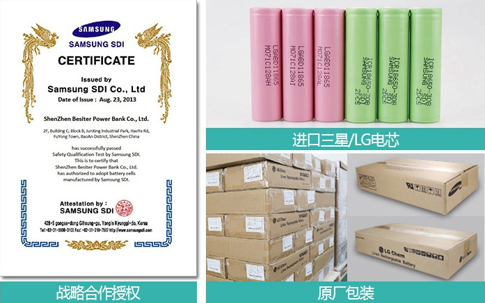 同樣的電芯容量,所用技術技術及材料有著本質的差別。格蘭木系列采用頂級的韓國進口三星/LG原裝電芯, 500次充放電循環后,依舊還有80%以上電量,真正的持久耐用,真正的安全放心。普通或低端電芯可能循環100次就只有80%電量了,循環200次電芯基本上報廢不可用狀態。