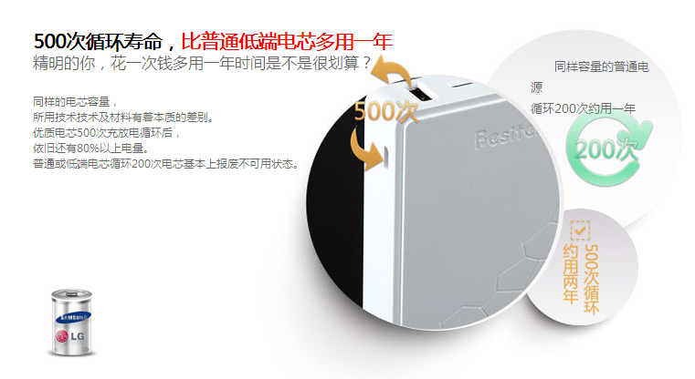 比如Besiter倍斯特移動電源,1998年開始成為大牌手機配件總代理。2010年開始專注于移動電源研發制造,并堅持采用A品優良電芯。2011年引入進口三星、LG電芯,并自主研發智能移動電源主板。2012年行業首創至尊售后服務,并連續兩屆蟬聯2012、2013年度中國最佳移動電源桂冠。2013年實現全網銷量領先,在12月用全系列采用進口電芯的格蘭木與小米展開巔峰對決,獲得極高贊譽與支持。2014年計劃建立一所倍斯特希望小學,用良心回饋社會。