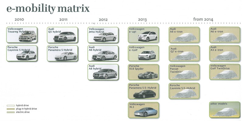 據美國媒體motortrend9月17日報道,在今年的法蘭克福車展上,大眾集團向媒體部分透露了未來幾年旗下插電式混合動力車的計劃,部分大眾、奧迪和保時捷三大品牌。 據圖片展示,有7款新車將會