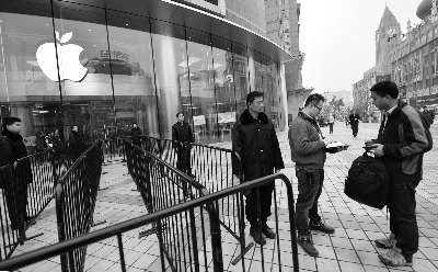 今天早上7點40分左右,記者來到北京王府井蘋果店,此時店外只有六七名用戶在排隊,他們均表示是網上預訂后前來店里取貨的。上午8點蘋果店開門后,工作人員表示暫時只接待網上預約取貨的顧客,其他顧客需要等到10點蘋果店正式開門后才可以進入。