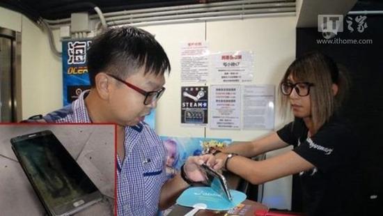 三星Note7手機香港第二次起火:網吧監控全程拍下
