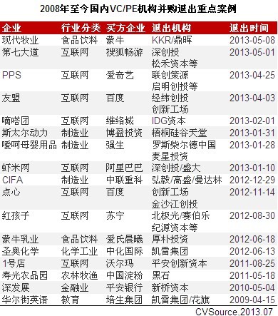 表4 2008年至今國內VC/PE機構并購退出重點案例