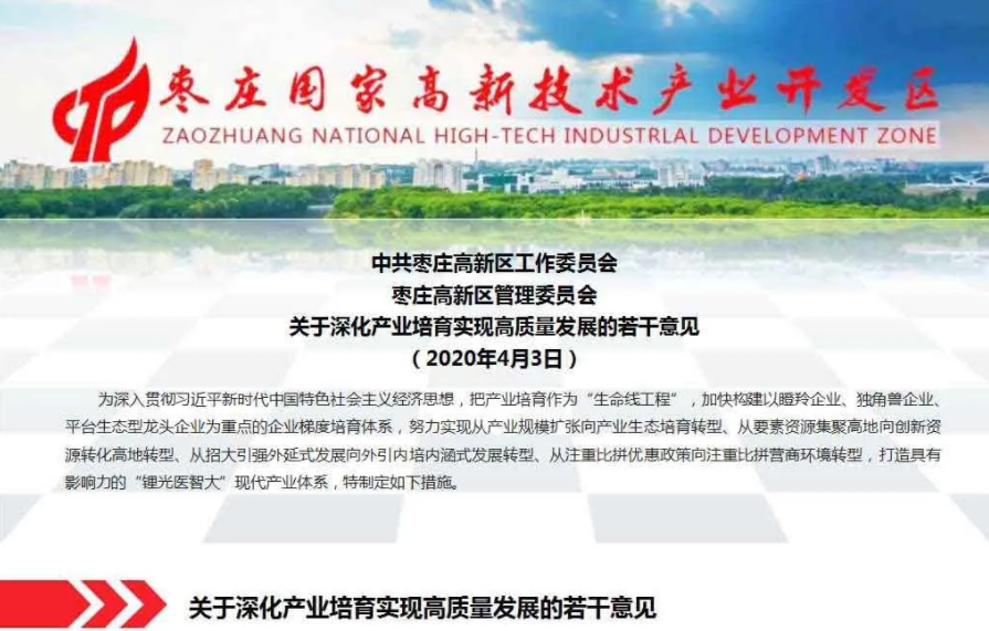 重磅利好!棗莊高新區發布產業培育18條真金白銀優惠政策