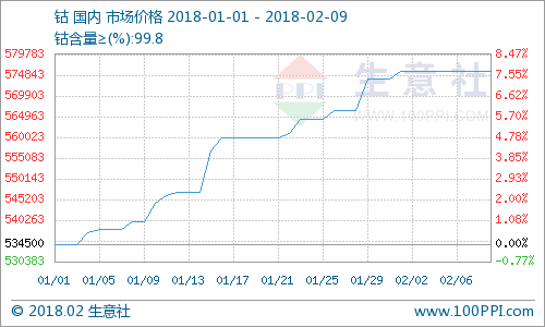 根據(jù)生意社數(shù)據(jù)監(jiān)測(cè)顯示:春節(jié)前后,鈷市行情有明顯不同,節(jié)前鈷價(jià)相對(duì)平穩(wěn),節(jié)后鈷價(jià)一漲再 ... 查閱全文