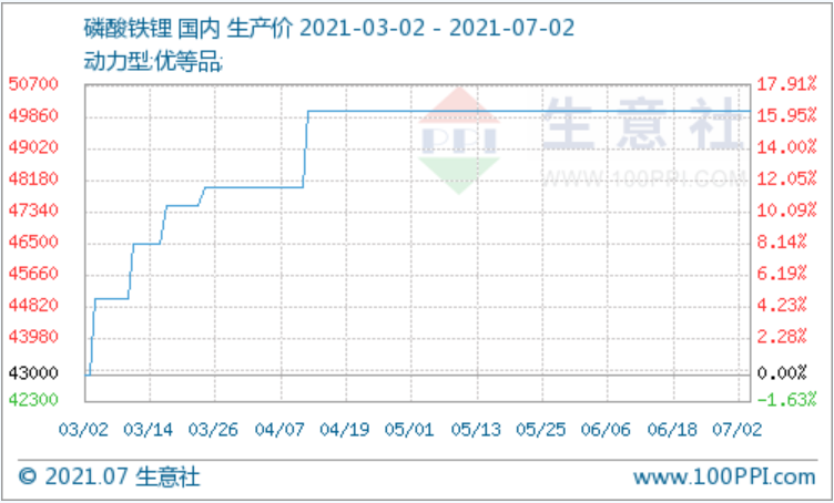 國內磷酸鐵鋰持穩運行 動力型優等品均價5萬元/噸