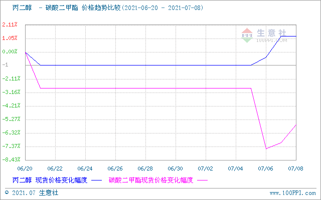 丙二醇近日連漲帶動碳酸二甲酯行情反彈 高端報價至7100元/噸