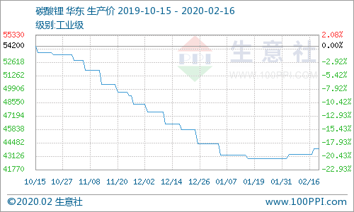 碳酸鋰市場行情暫穩 2月19日電池級碳酸鋰華東地區均價5.12萬元/噸