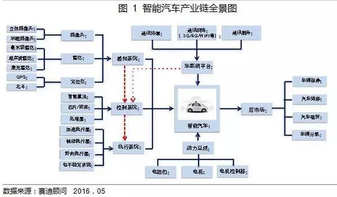 三大系統(tǒng)、一個(gè)平臺(tái)和一套總成構(gòu)建起智能汽車。從智能汽車產(chǎn)業(yè)鏈看,產(chǎn)業(yè)鏈前端核心部件主要由三大核心系統(tǒng)、一個(gè)平臺(tái)和一套總成組成。其中三大核心系統(tǒng)指感知系統(tǒng)、控制系統(tǒng)和執(zhí)行系統(tǒng),感知系統(tǒng)由攝像頭、雷達(dá)、定位儀等傳感設(shè)備組成,控制系統(tǒng)由芯片、處理器和算法等構(gòu)成,執(zhí)行系統(tǒng)主要由加速執(zhí)行器、制動(dòng)執(zhí)行器、轉(zhuǎn)向執(zhí)行器和電子穩(wěn)定系統(tǒng)等組成;一個(gè)平臺(tái)指車聯(lián)網(wǎng)平臺(tái),其由3G/4G/無(wú)線等通信網(wǎng)絡(luò)、通信終端、精確3D地圖等組成;一套總成系統(tǒng)指動(dòng)力總成系統(tǒng),主要包括動(dòng)力電池包、電機(jī)、電控等。