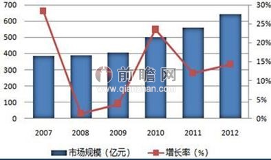 圖表1:2007-2012年我國鋰電池市場規模(單位:億元,%)