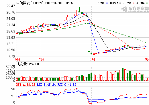 中信國安:上半年營收16.74億元 同比增長37.19%