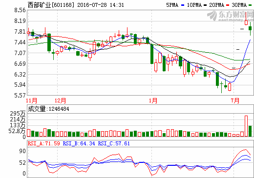 西部礦業:2016上半年凈利潤0.31億元 同比下降26.26%