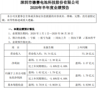 德賽電池預計上半年營收約75.74億 凈利逾1.62億