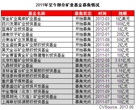 在PE行業競爭不斷加劇的背景下,專業化基金已經漸成主流,礦業領域由于其專業程度高、政策性強等特點受到了VC/PE機構的關注。2012年5月,九鼎投資旗下首只礦業基金——九鼎投資礦業基金募集完成,規模達5億元,主要關注能源、金屬礦產與非金屬礦產等領域,投資方向主要包括優質成熟型、高速成長型礦業企業參股投資,以及具有重大并購價值的礦業企業并購投資。