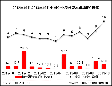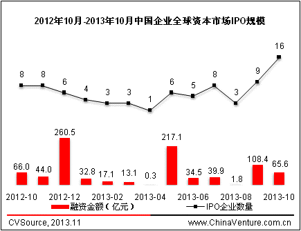 圖1 2012年10月-2013年10月中國企業(yè)全球資本市場IPO規(guī)模